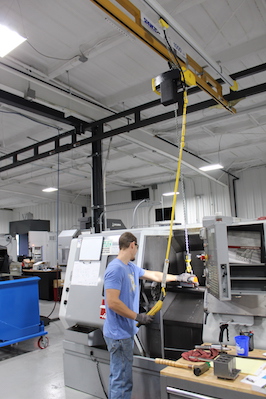 Some production environments require the teams to quickly and safely move pre-machined materials and the necessary tooling from one area in their facility to another. This challenge is easily conquered by using a Workstation Crane System from Bridge Crane Specialists. The runway and monorail design allow the operator here at Vacuworx in Tulsa, Oklahoma to have full flexibility in a facility that requires multiple tasks within a long expanse and congested floor plan.